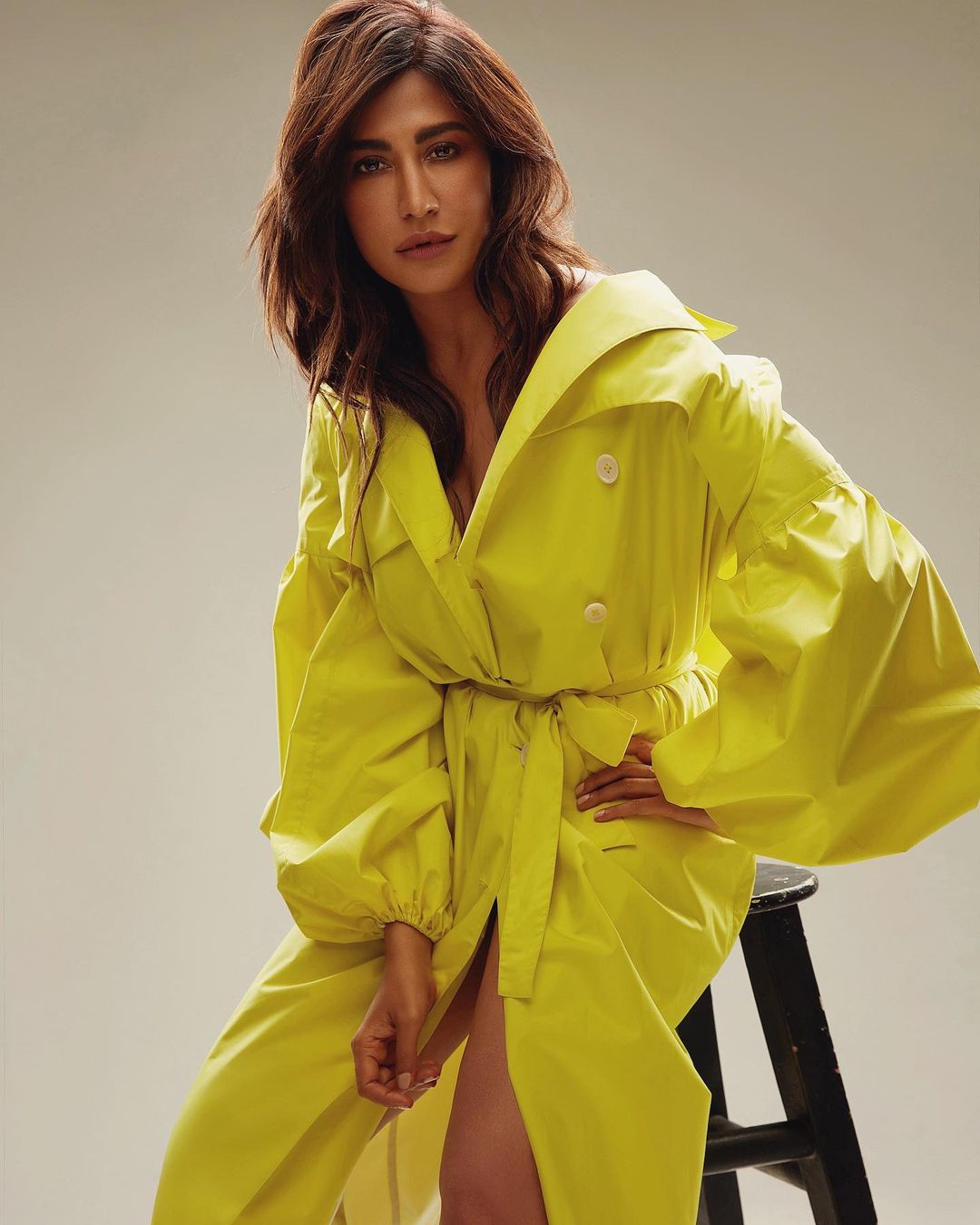 Neon Green Trench Coat Dress: Chitrangada looked drop-dead gorgeous in this neon green trench coat dress.